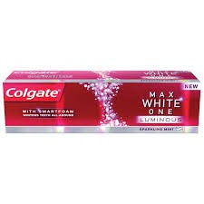 Colgate MAX WHITE ONE LUMINOUS 75 ml - zubní pasta která čistí pomocí pěnivého složení v celé ústní dutině a dokonce i na těžko dostupných místech. Účinně bělí zuby ze všech stran.