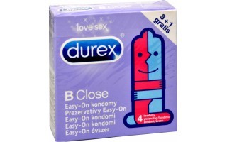 Kondomy Durex B Close s easy on tvarem pro snadnější nasazení, zakončený rezervoárem - extra lubrikace pro zvýšení pohodlí. Průhledné a lubrikované kondomy z přírodního kaučukového latexu.