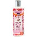 Rosarium tělové mléko s extrakty z šípků a květů růže.Kvalitní olejové komponenty v receptuře, které jsou doplněny o extrakty z plodů šípku (Rosa Canina) a květů růže (Rosa Centifolia), působí jako přírodní emollient, napomáhají pokožku udržovat
