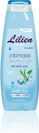 Lilien intimní sprchový gel White Tea 300 ml - white tea and panthenol. Jemný sprchový gel vhodný především pro intimní hygienu. Obsahuje extrakt bílého čaje a Panthenol, který napomáhá hojení mikroskopických poranění citlivé sliznice.