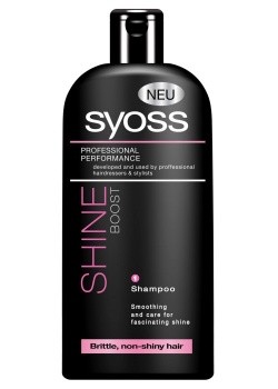 SYOSS - Shine Boost šampon pro vyšší lesk 500ml . Syoss šampon pro vyšší lesk vyhlazuje strukturu vlasů a dodává zářivý lesk plný fascinujících odlesků . Syoss je řada vlasové péče speciální vyvinutá s kadeřníky a kadeřníky používaná.